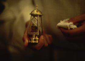 Así mismo, el hagiógrafo Luís Muñoz, en su obra “Vida de la venerable madre Mariana de San José” publicada en 1646 describe este prodigio de la siguiente manera: “Es una pirámide de cristal con una pequeña redoma en su interior y en ella una cantidad de sangre del mártir, que todo el año está coagulada, y en las primeras vísperas de su festividad, que es el día 26 de julio, se ve desleírse poco a poco, y al día siguiente, que se celebra el Santo, ya se nota fluida y moverse, y en las segundas vísperas, vuelve a coagulase, quedando como una bolita de cera” (2).
