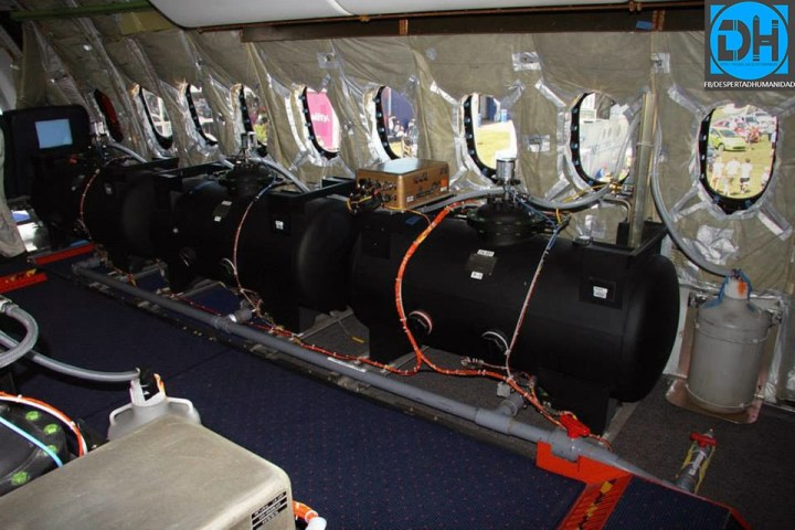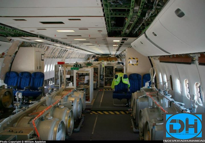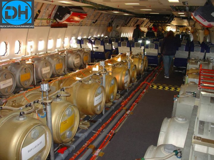 Existen una gran variedad de imágenes de cómo algunos aviones aparentemente comerciales, por dentro, están repletos de bidones y de tecnología preparada para la causa: