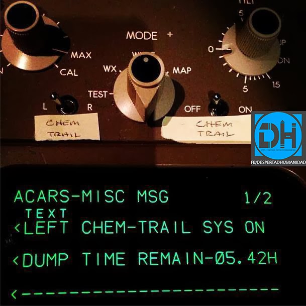 Algunas son estelas de condensación pero otras parecen otra cosa , algunas presentan diseños y parecen estar coordinadas entre varios aviones , no creo que sea casual . ¿ Cómo debemos protegernos ? ¿ Afecta por igual a toda España ? ¿ Se han dado casos de alimentos intoxicados ? ¿ Alguien sabe algo ? Como no me gusta crear alarma , prefiero no decir nada hasta estar seguro . chao !