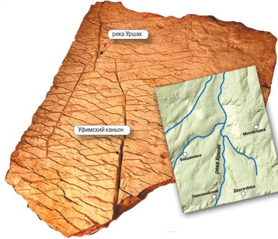 El relieve orográfico de la región de Baskiria no había cambiado mucho en unos millones de años y, con la ayuda de varios especialistas en ciencias auxiliares (cartógrafos, topógrafos, geólogos, etcétera), se consiguió rápidamente identificar el monte de Ufa, su falla, los diferentes ríos de la región de los Urales y otros hitos geológicos y geográficos, con lo que se pudo también deducir que el mapa estaba realizado a una escala de 1 centímetros: 1,1 kilómetros. El mapa también revelaba la existencia de un gigantesco sistema de canales artificiales de unos 12.000 kilómetros de longitud y 500 metros de ancho, con 12 embalses de entre 300 y 500 metros de ancho, 10 kilómetros de largo y 3 kilómetros de profundidad.