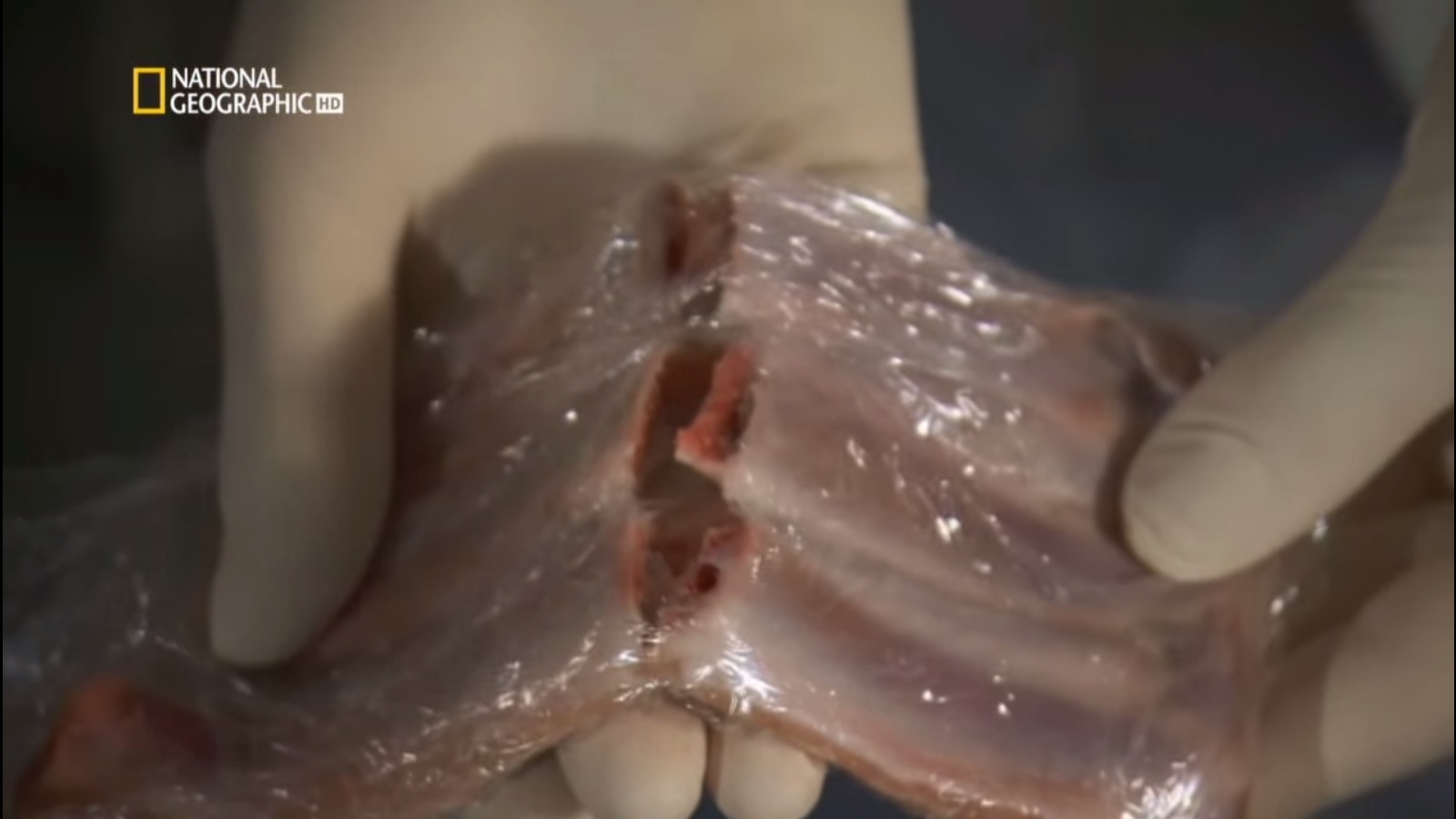 Para el experimento se utiliza un costillar de cerdo, parecido en tamaño y solidez a las costillas humanas.