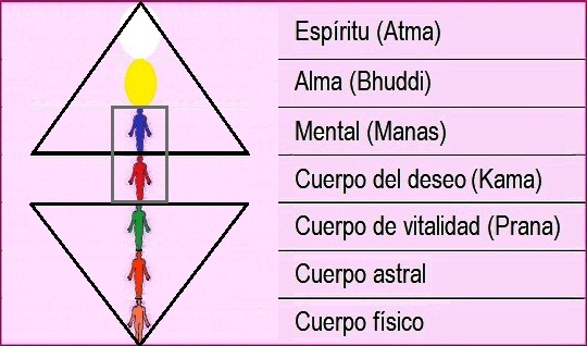 El Plano Astral: este quedaría “abajo” del plano kamico, y en realidad no puede ser un lugar de residencia para los desencarnados, ya que es un lugar de creación y transformación. La siguiente imágen sirve para darse una idea de dónde se encuentran estos planos.